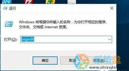 2、在运行里面输入命令“regedit”进入注册表编辑器进行修改;