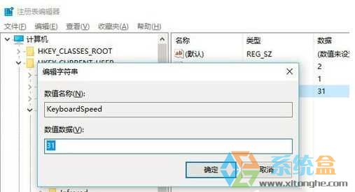 4、找到注册表编辑器右边最下面的keyboardspeed,双击;