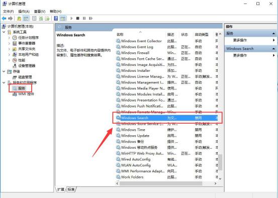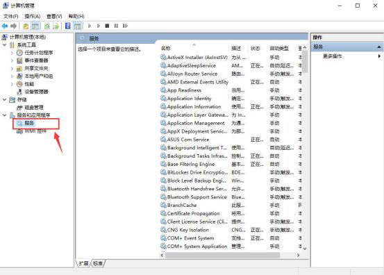 2、在管理页面依次打开【服务和应用程序】-【服务】,点击【服务】,如图: