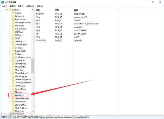 HKEY_CURRENT_USER\Software\Microsoft\Windows\CurrentVersion\Explorer\RunMRU,如图: