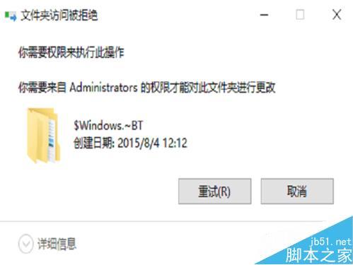 1、如下图所示,这个目录应该是win7升级win10过程中的遗留目录,升级完了就不需要了,而在删除文件夹时报错,提示需要有管理员权限,编的账号本身就已经有管理员权限了。