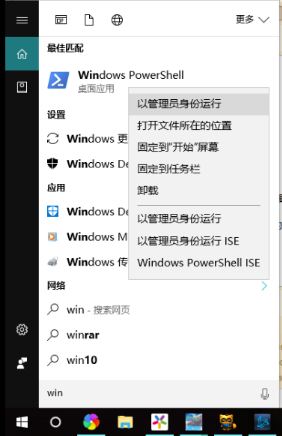 打开windows powershell,在搜索框输入”windows powershell” 用管理员方式运行。