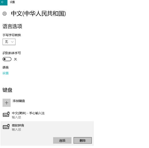 3.选择微软拼音然后删除。记得先安装一个其他的输入法,要不然是无法删除的。