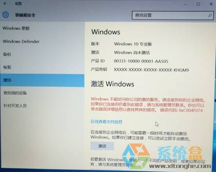 最近有用户反应,在激活windwos 10系统的时候出现了错误提示:windows 不能访问你公司的激活服务,请链接到你的企业网络,如果你已连接但仍看到此项,请与系统管理员联系,你也可以单击错误详细信息以查找具体的错误,错误代码:0xC004F074