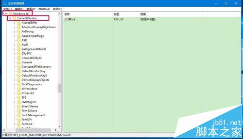 4、在Microsoft展开项中展开Windows NT\CurrentVersion;