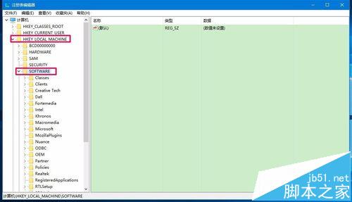 2、在注册表编辑器窗口,依次展开:HKEY_LOCAL_MACHINE\SOFTWARE;