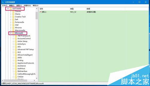 3、在SOFTWARE展开项中再展开:Microsoft;
