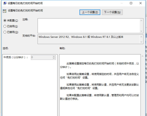 分别双击打开,点击选择【已启用】,设置每日的免打扰时间,然后设置开启时间(以分钟计),点击“确定”即可。