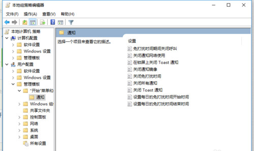 2、进入【用户配置】-【管理模板】,双击打开【开始菜单和任务栏】-【通知】;