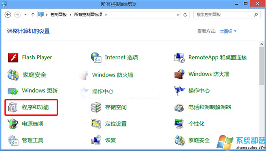 1、打开Win10系统控制面板,选择以大图标方式查看。
