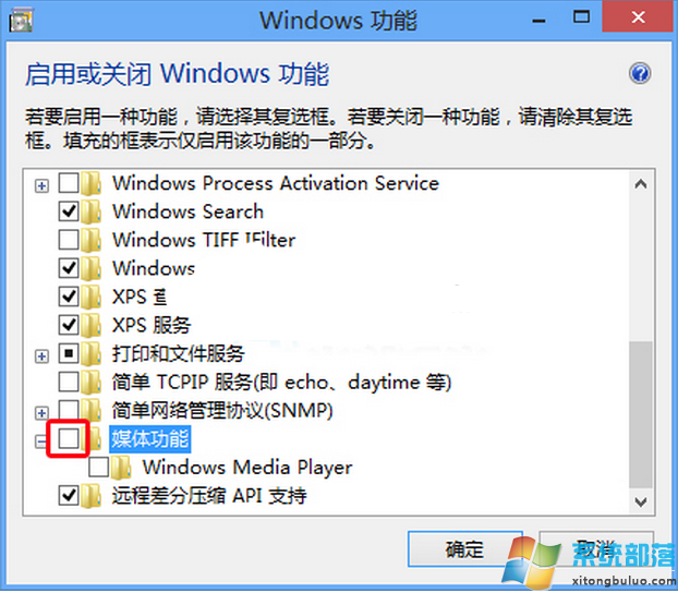 4、点击“确定”后,系统就会自动删除Windows功能操作,删除Media Player播放器后,重启计算机就行了。更多精彩内容欢迎继续访问系统部落电脑系统下载 !