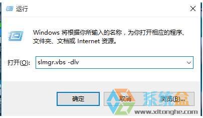 1、按“win+R”调出“运行”窗口,输入“slmgr.vbs -dlv”命令后按回车。