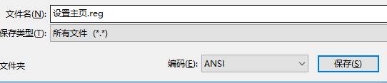 3、点击左上角的“文件”—“另存为”,将“保存类型”修改为“所有文件”,将文件名修改为“修改主页.reg”点击保存;