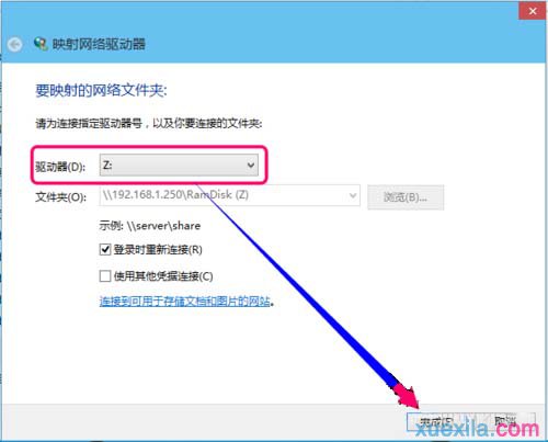 6、然后给网络驱动器分配一个驱动号、也就是盘符。