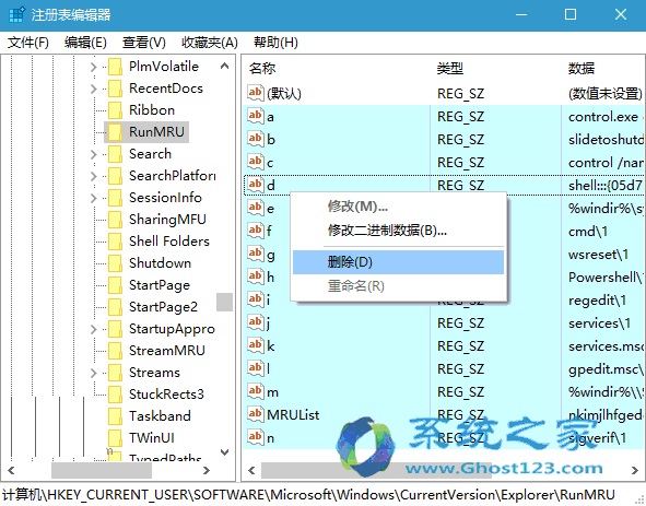 3、可以删除右边除“(默认)”之外的所有值,也可以选择性删除,可参照“数据”中命令内容来定夺(如上图)。