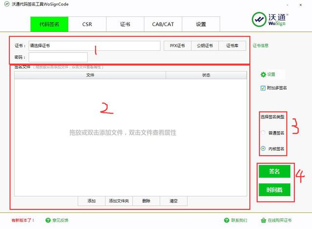 下载安装沃通代码签名精灵,支持SHA1、SHA2双证书签名,解决不同版本操作系统的兼容性问题。