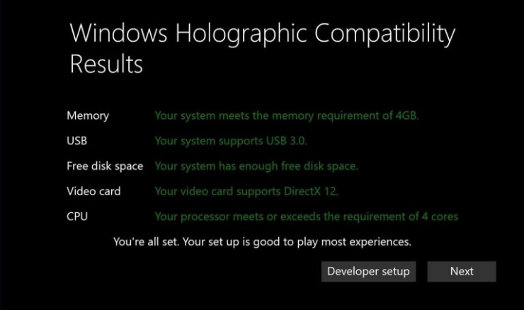 在微软近期的一个Windows 10测试版中,一个兼容性测试应用透露了微软对Windows Holographic的最低配置要求。Windows Holographic是一个AR/VR应用平台,微软为此联合了几家PC大厂推出平价的VR头盔。