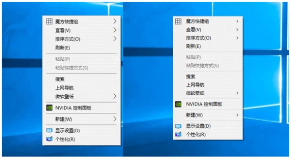 ▲右键菜单“瘦身”前(左)后(右)对比图