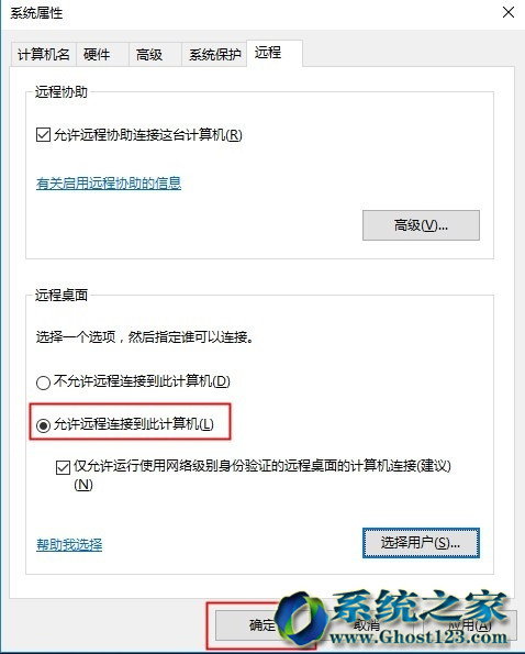 3、然后选择“允许远程连接到此计算机”并确定即可。