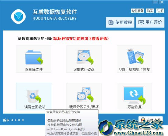 步骤1:请用户找到“互盾数据恢复软件”的下载资源,将其下载安装到电脑上,注意不要安装到删除文件所在分区, 用户也可以选择安装到连接电脑的U盘等移动储存设备里面。