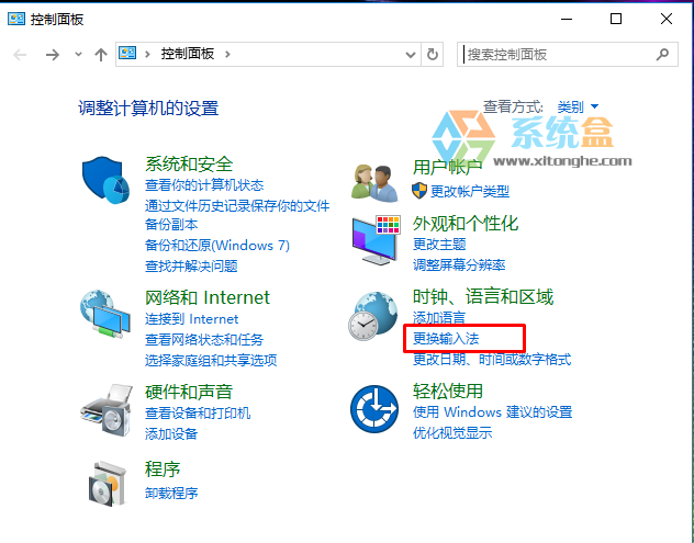 2、在控制面板中点击“更换输入法”;