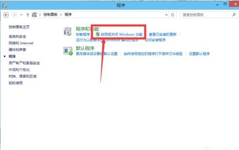 然后再程序中,找到“启动或关闭windows功能”。点击打开。