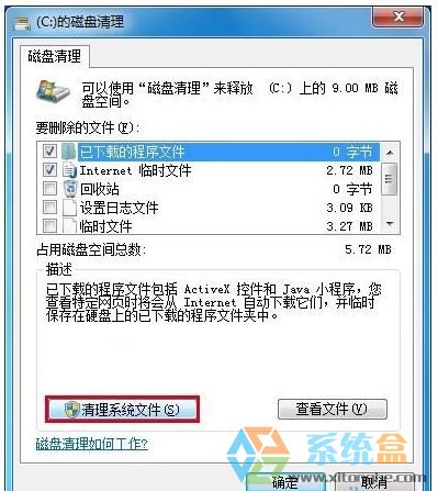 5、运行磁盘清理程序,并选择清理系统文件(如下图);