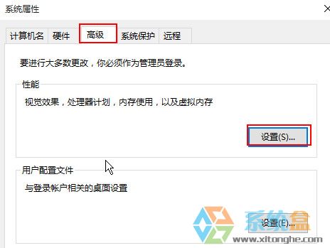 4、在弹出的系统属性窗口中,点击性能栏的设置按钮,如下图所示: