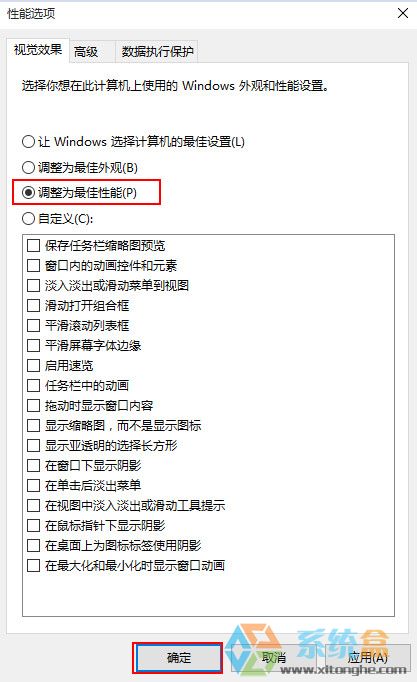 5、点击“调整为最佳性能”,然后点击确定,如下图所示: