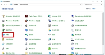 1、桌面采用快捷键Win+X,打开控制面板,点击右上角查看方式为大图标,点击恢复;
