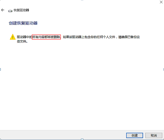 4、备份提示,创建恢复介质将清空存储介质,需要提前转移数据文件。