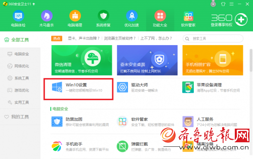 先给大家推荐极速解决的方法。首先,下载360安全卫士并在功能大全中开启win10设置功能。