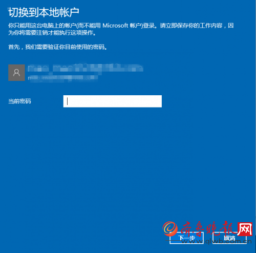 系统会提示【切换到本地账户】,现在,输入当前的微软账户密码,确认更改。