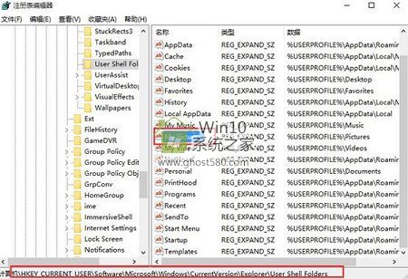 2、依次展开:“HKEY_CURRENT-USERSoftwareMicrosoftWindowsCurrentVersionExplorerUser Shell Folders”,在右侧找到并打开“My Pictures”,如下图所示: