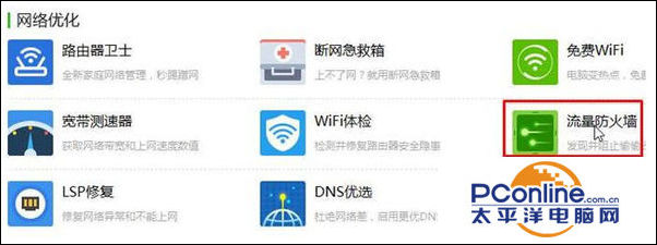 2、在全部工具界面中点击“流量防火墙”;