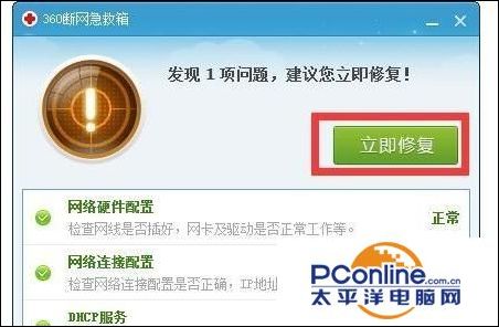 当Win10网络不稳定时,我们可以尝试利用“360断网急救箱”来尝试修复网络连接故障。在“360安全卫士”-“更多功能”界面中找到“断网急救箱”工具打开,待完成本地网络的检测操作后,点击“立即修复”按钮即可尝试修复网络故障。