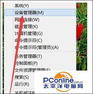 接下来右击Win10桌面左下角的“Windows”开始按钮,从其右键菜单中选择“设备管理器”项进入。
