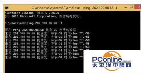 从打开的MSDOS界面中,输入命令“ping DNS地址”即可从结果中查看网络延时情况。如图所示: