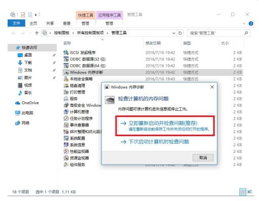 双击“windows 内存诊断”,点击“立即重新启动并检查问题”,重启之后,基本上能够解决Win10系统下SYSTEM进程占用内存过高的问题。