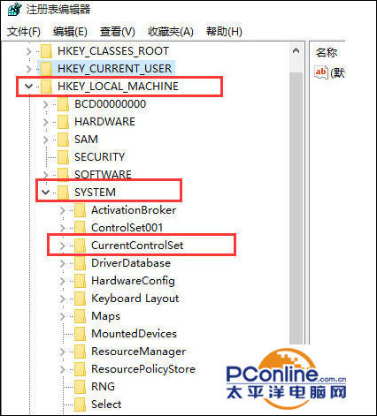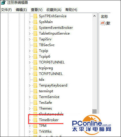 打开注册表编辑器之后,在左侧栏目中依次双击打开并定位到:HKEY_LOCAL_MACHINESYSTEMCurrentControlSetServicesTimeBroker项。