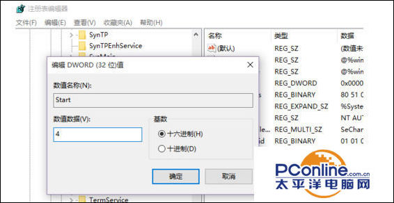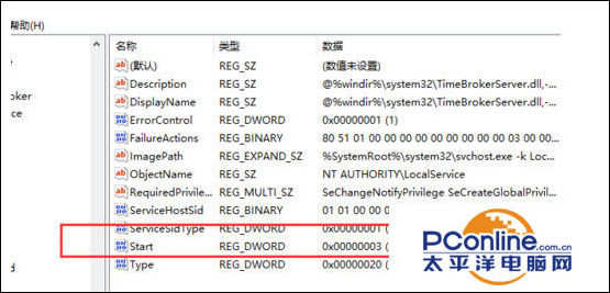 双击打开TimeBroker项,然后在打开的页面中找到start,将其数值由3改为4,然后点击”确定“按钮保存该设置。