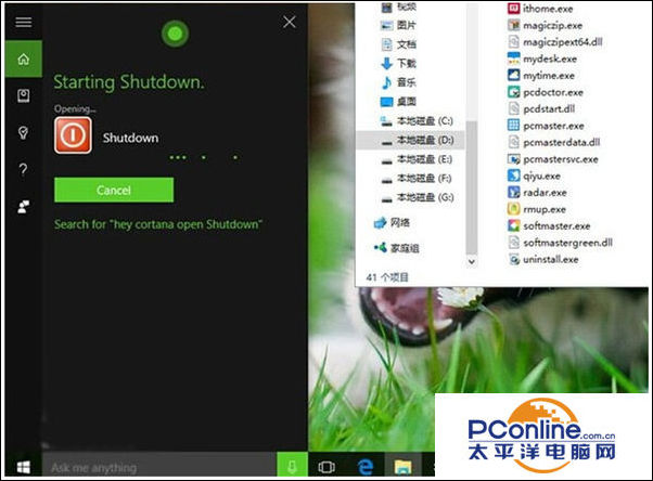 现在,只要跟Cortana说“你好小娜,打开‘关机’”就可以执行语音关机。需要注意的是,“打开”二字必须要说,不然“口诀”无效。