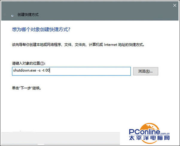 5、在“位置”文本框输入以下命令来关机功能(如上图):