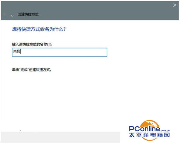 6、点击“下一步”之后,给快捷方式命名,可以命名为“关机”,如下图:
