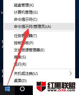 右击桌面左下角的“Windows”按钮,从其右键菜单中选择“命令提示符(管理员)”项。