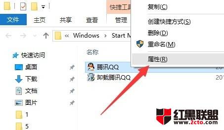 右击“QQ快捷图标”,从其右键菜单中选择“属性”项进入。