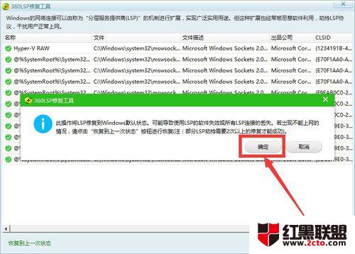 接着从打开的“360LSP修复”工具主界面中,点击“立即修复”按钮,并在弹出的窗口中点击“确定”以完成电脑LSP修复操作。