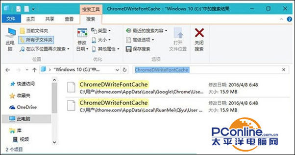 打开资源管理器—此电脑,在搜索框中输入ChromeDWriteFontCache,如下图所示,将所有搜索到的项目删除,重新打开浏览器时会自动重建这些缓存文件,此时即可恢复正常。
