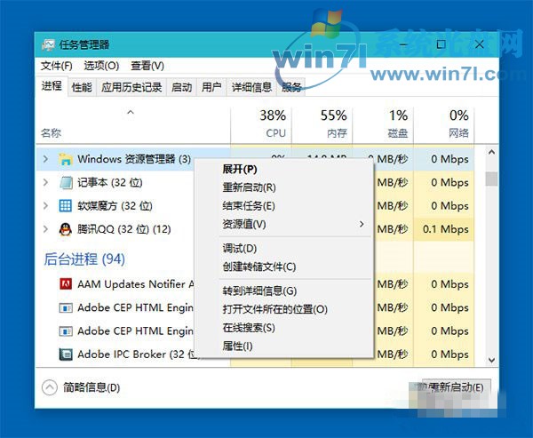 2、重启一下Windows资源管理器,具体方法如下: