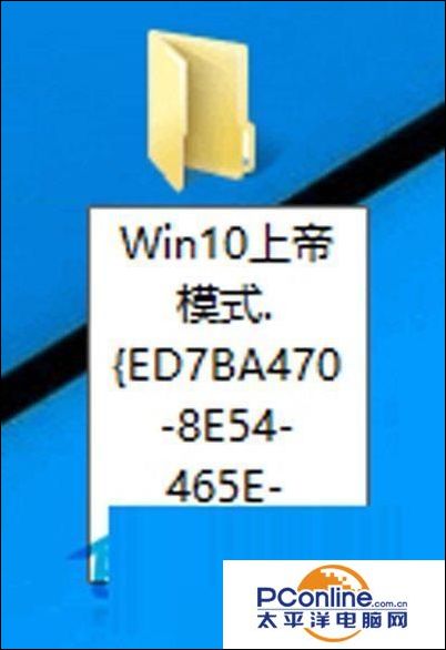 在Win10桌面上新建一个文件夹,然后把新建文件夹修改为后缀名(扩展名)为 。{ED7BA470-8E54-465E-825C-99712043E01C} 的任意名称(Win10修改文件后缀名(扩展名)的技巧),例如 Win10上帝模式。{ED7BA470-8E54-465E-825C-99712043E01C}。如图